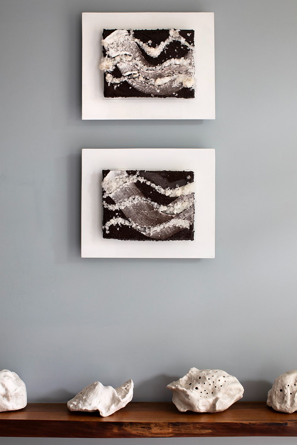 A common theme in her work is the natural environment and the ambivalent state of materials, exemplified by her latest series of pieces based on salt - a vital commodity for life whose state is constantly shifting. Her ceramics aim to challenge preconceptions, provoke thought and encourage the viewer to draw their personal interpretation.