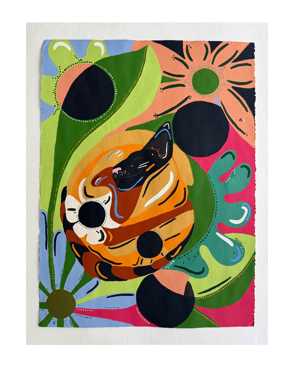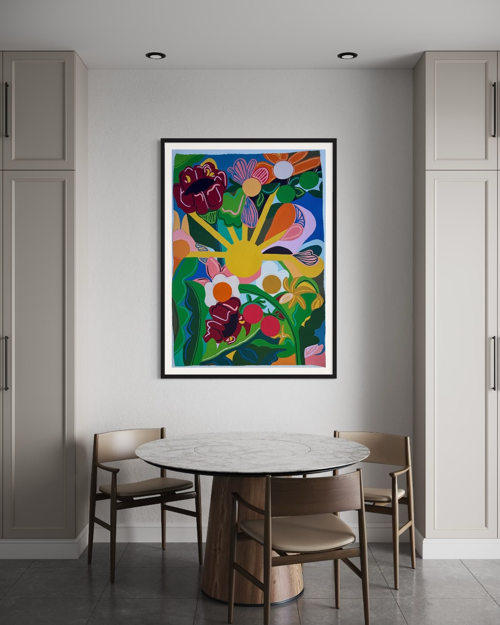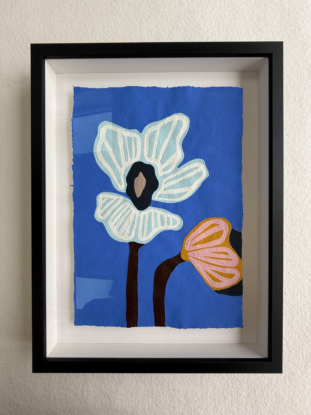 I am a self-taught Birmingham artist, now living and working in West London, creating vibrant works on cotton paper using emulsions. My art draws inspiration from retro floral textiles, vintage and mid-century aesthetics, alongside the world around me. When I'm not painting, I'm an independent art teacher for primary age children, introducing my students to a diverse range of cultures, genres, and time periods; this in itself brings new ideas and inspiration for my work.