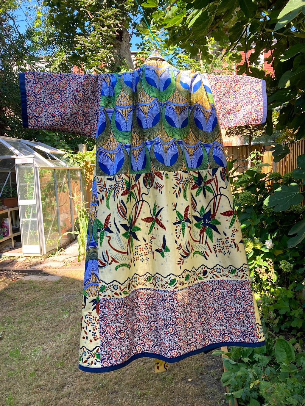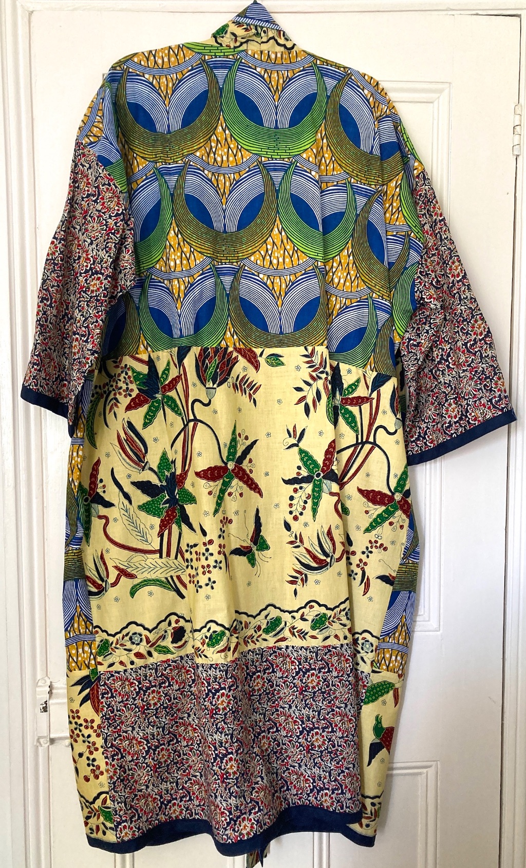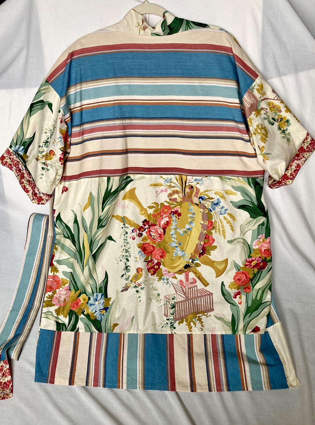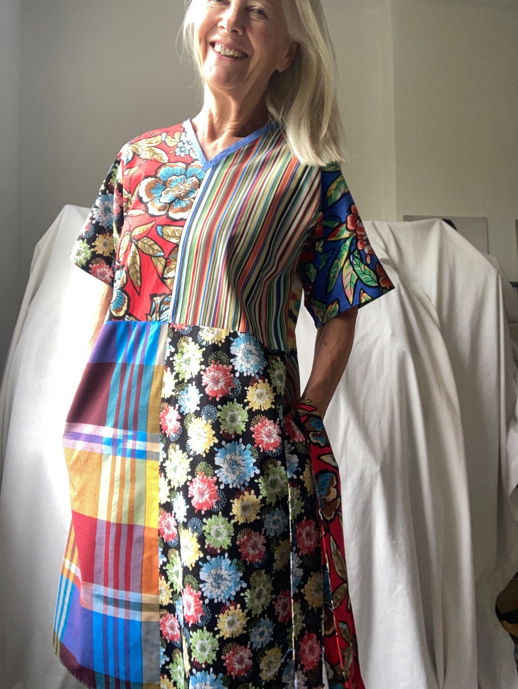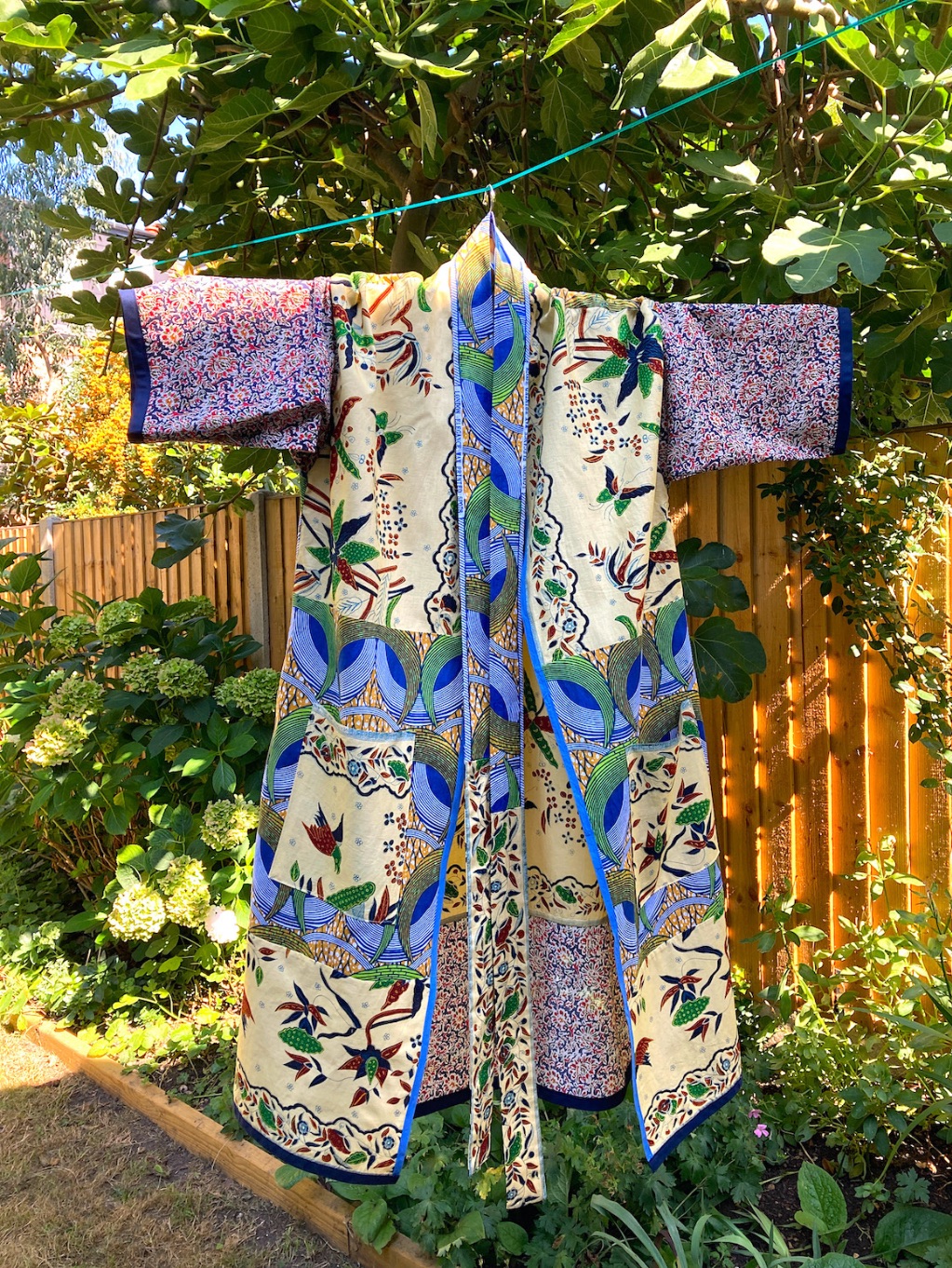 I create one-off kimonos, shirts,and accessories using fabric collected over 40+ years while travelling the world as a textile designer and lecturer. Each garment has its own story. They are made to wear, treasure, and keep.