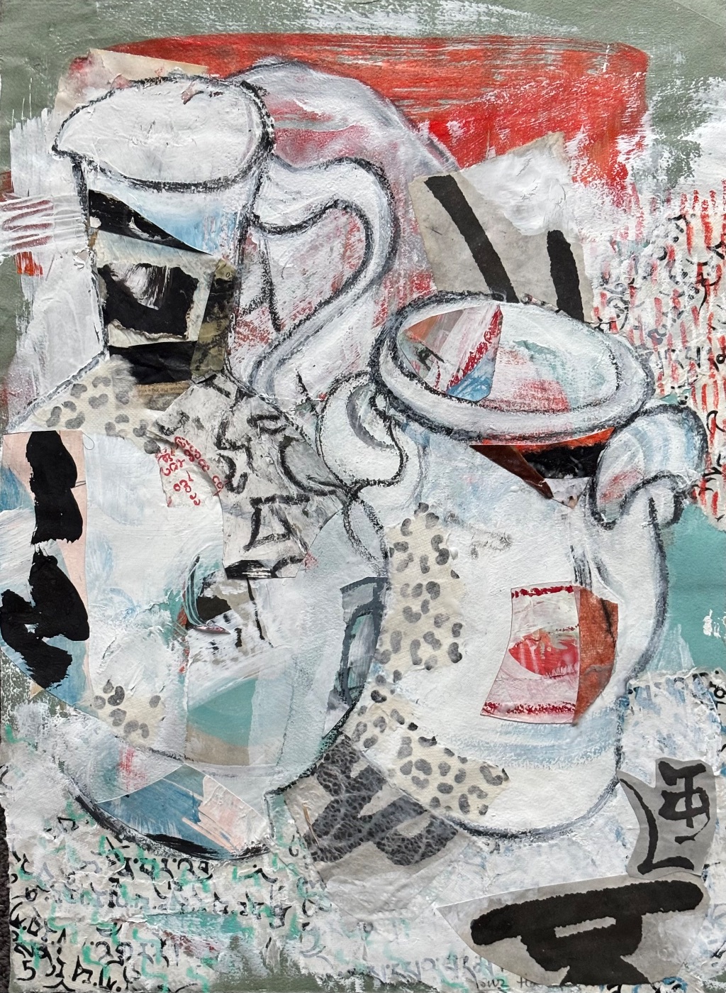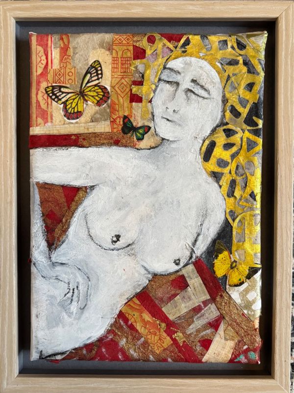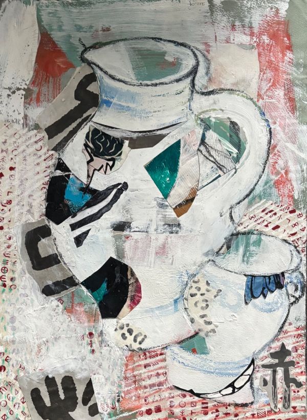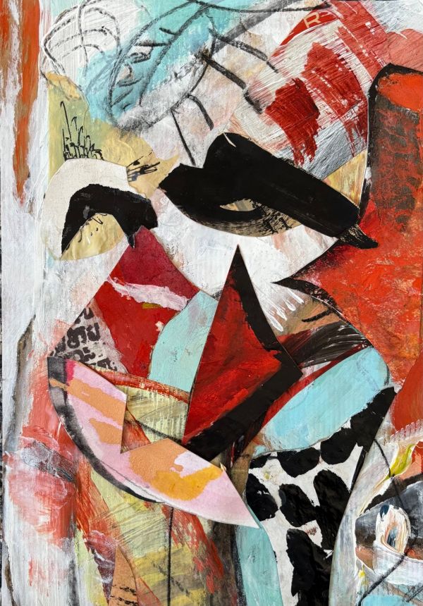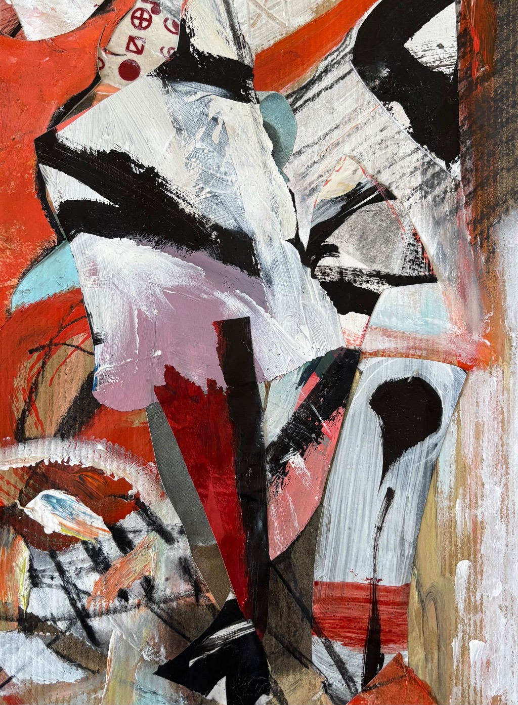 Suz's work springs out of an excitement about the present and an equally strong impulse to embed and reconfigure elements physically taken from the past pieces. She will boldly tear into existing pieces, collating and layering the old with the new, giving her work a free, dynamic and powerful depth and freshness. It is this configuration of past experiences, moments in a personal history recorded and expressed through drawing and paintings, that has become privotal to her practice.