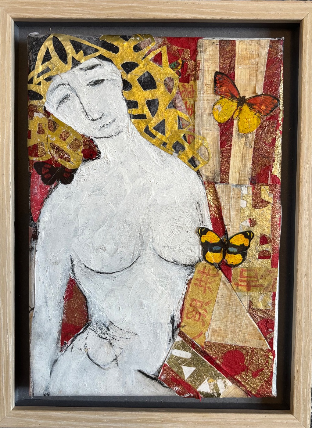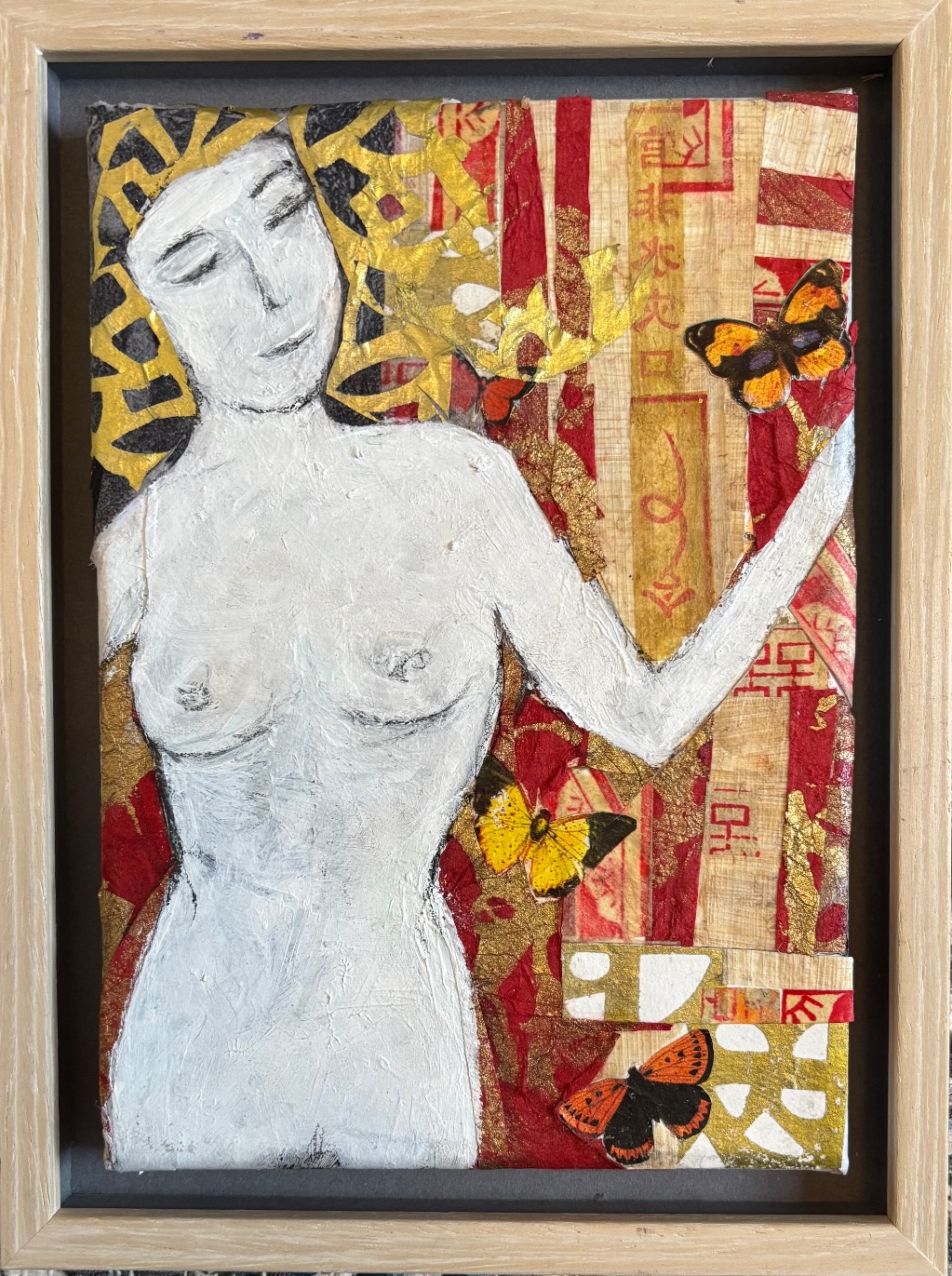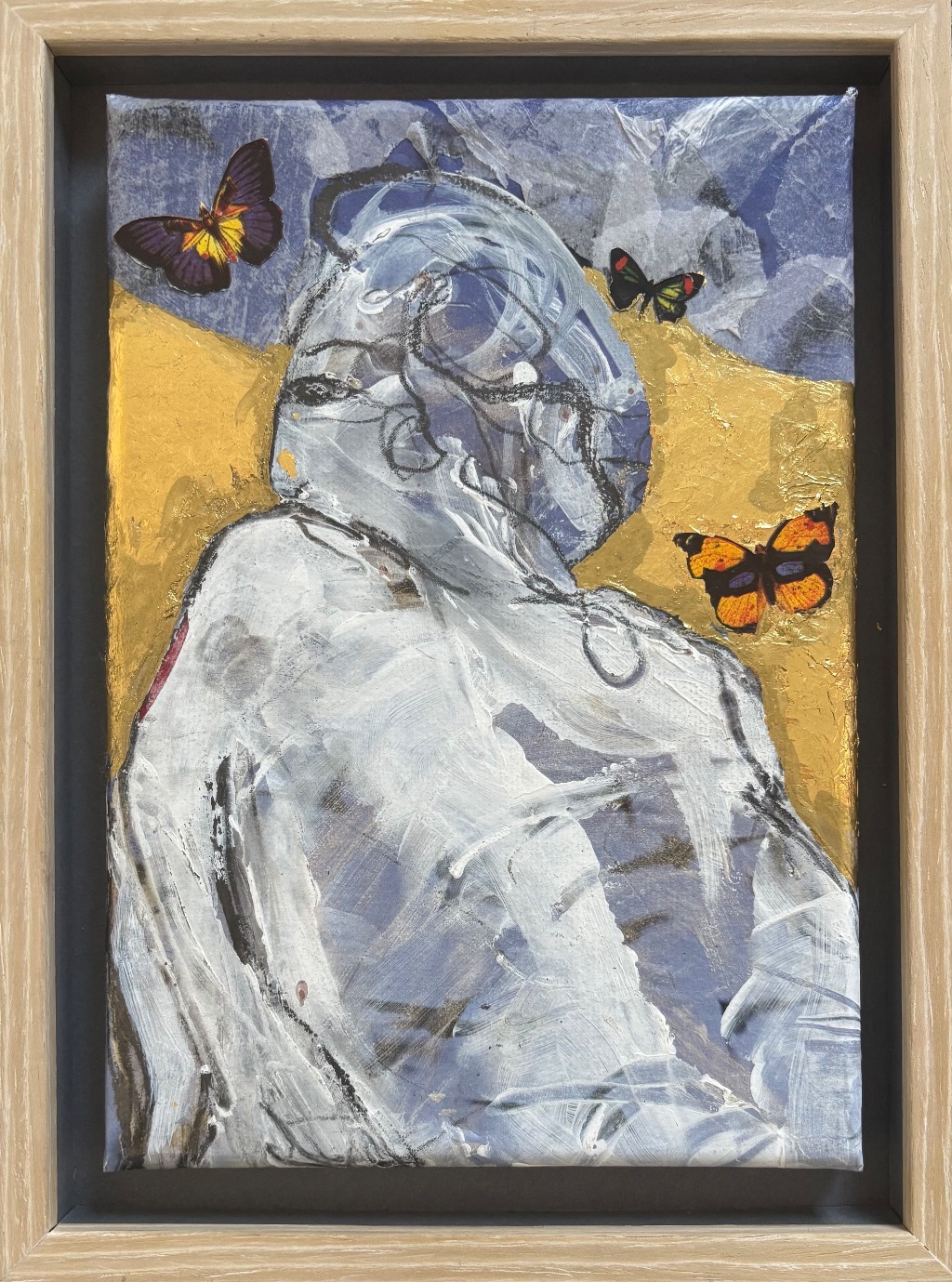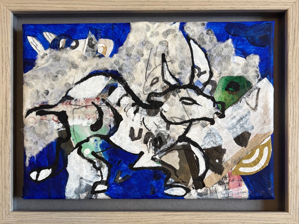 Suz's work springs out of an excitement about the present and an equally strong impulse to embed and reconfigure elements physically taken from the past pieces. She will boldly tear into existing pieces, collating and layering the old with the new, giving her work a free, dynamic and powerful depth and freshness. It is this configuration of past experiences, moments in a personal history recorded and expressed through drawing and paintings, that has become privotal to her practice.