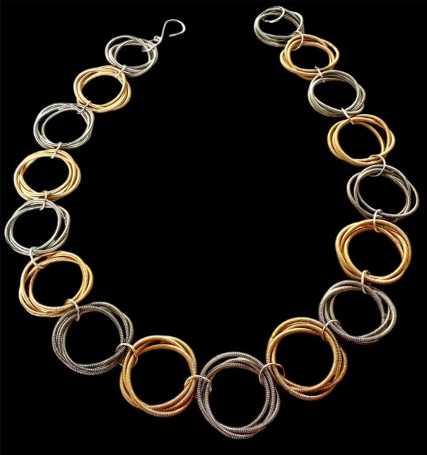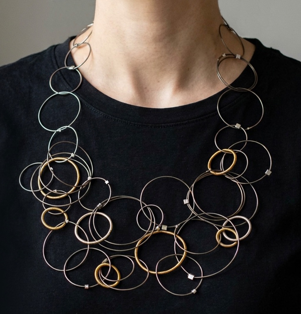 Debbie Brenner and Jackie Heuman work together under the name of Felicity Gail. They make contemporary jewellery with strong modern designs, using a variety of unusual and recycled materials such as piano wire, paper and plastics. They create striking jewellery, from the highly dramatic to fine delicate pieces. Museums and galleries such as Tate, Hepworth and Royal Academy have commissioned them to create jewellery inspired by art collections. Their unique designs are handmade in their Chiswick studio.