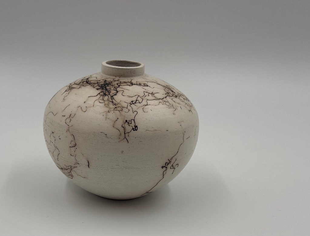 Also one off interiors feature pieces from large sculpted moon jars to burnished raku fired vases.