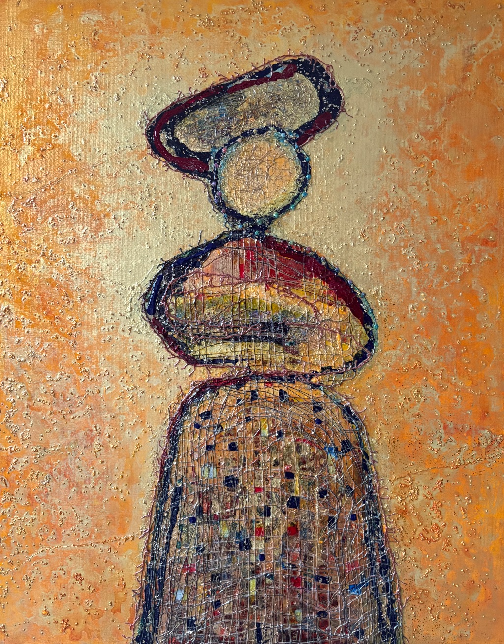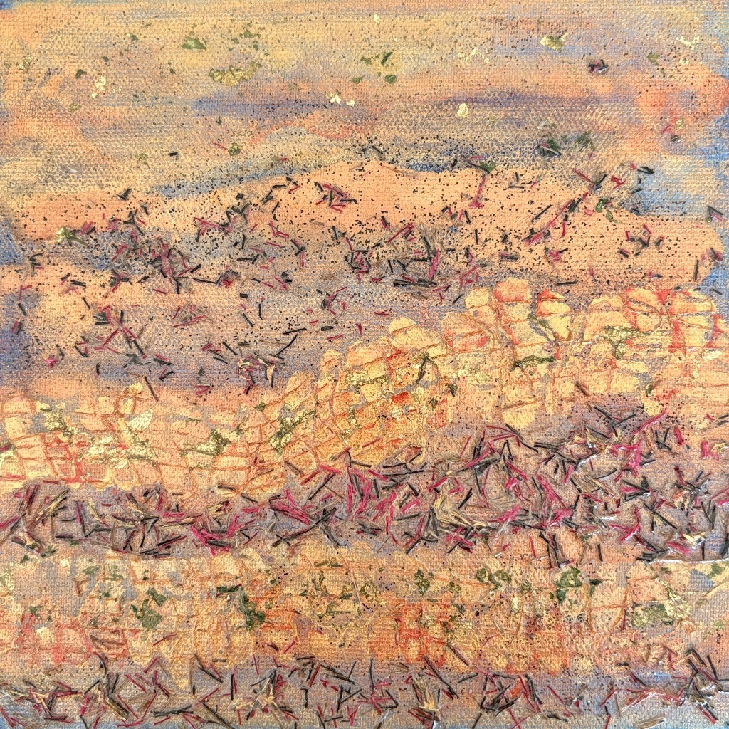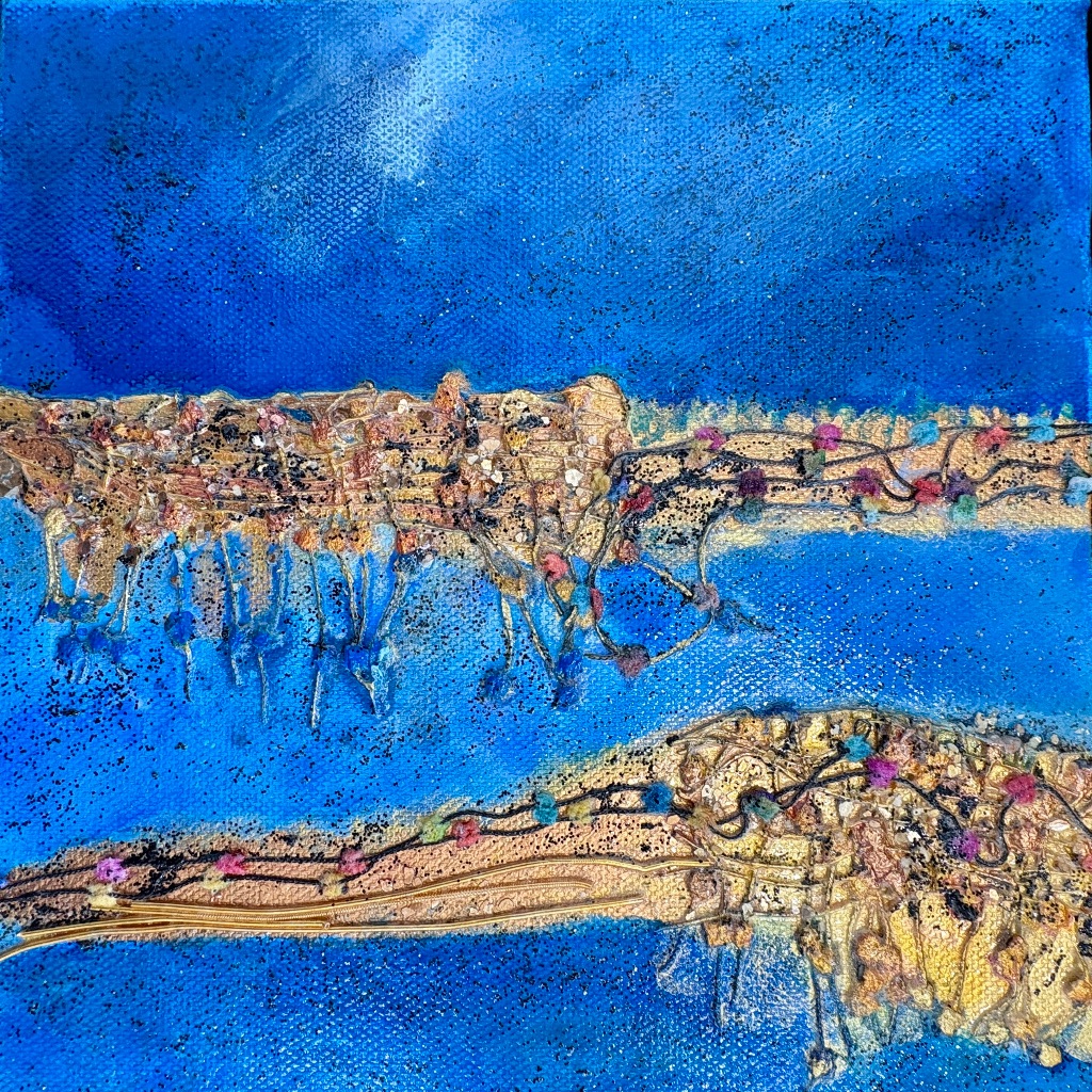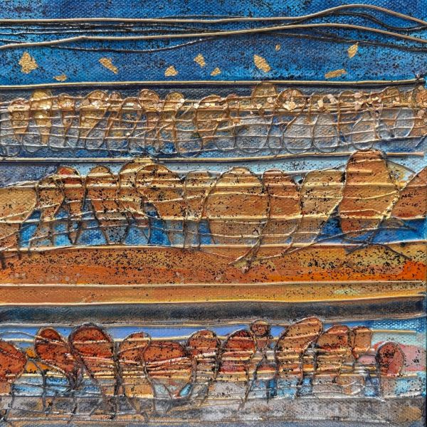 Using acrylic paint and open weaves on canvas, I am interested in stories translated into themes and landscape, such as Salt Marshes, Brilliant Women, and more recently, large abstracts.