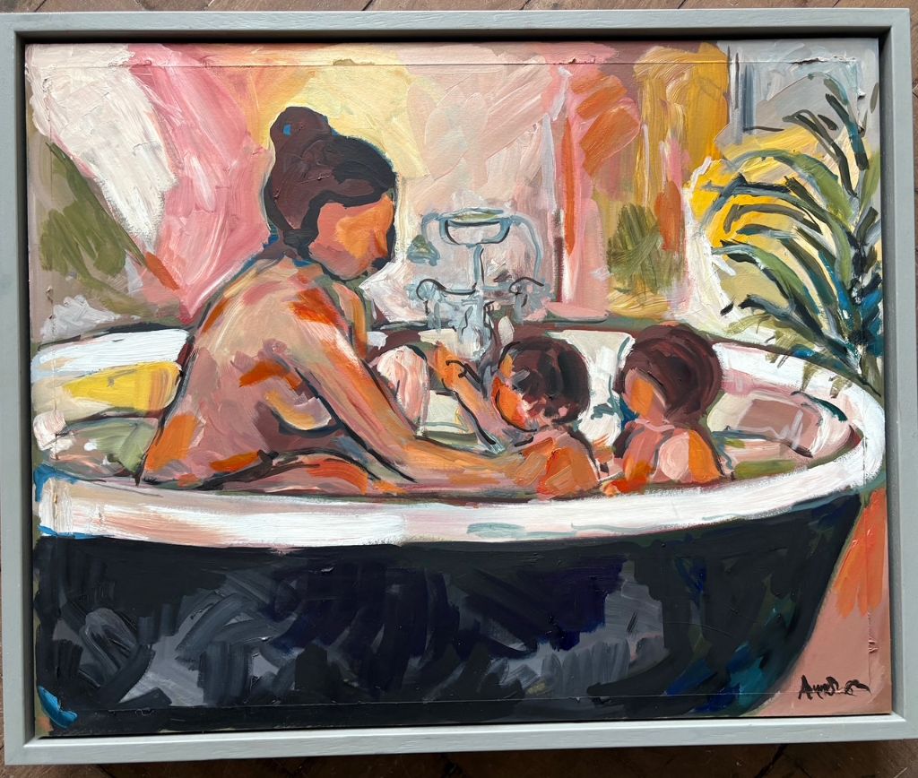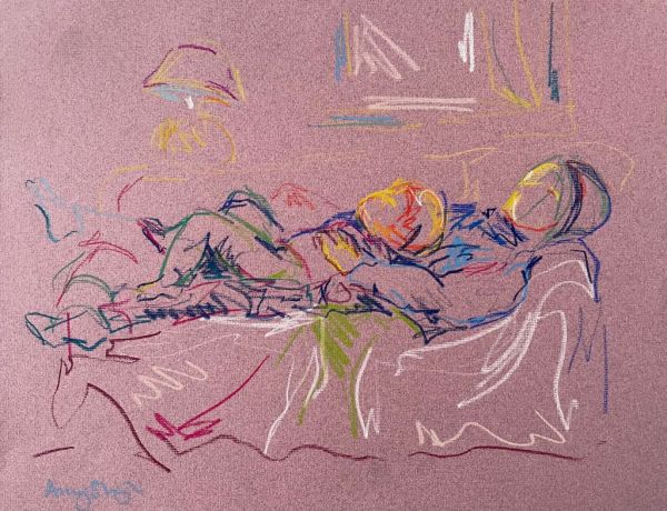 Amy's motherhood series observes the unsung tasks of caregiving, depicting the exhaustion and pleasures of being a mother. Her drawings of domestic scenes are raw, honest and full of movement.