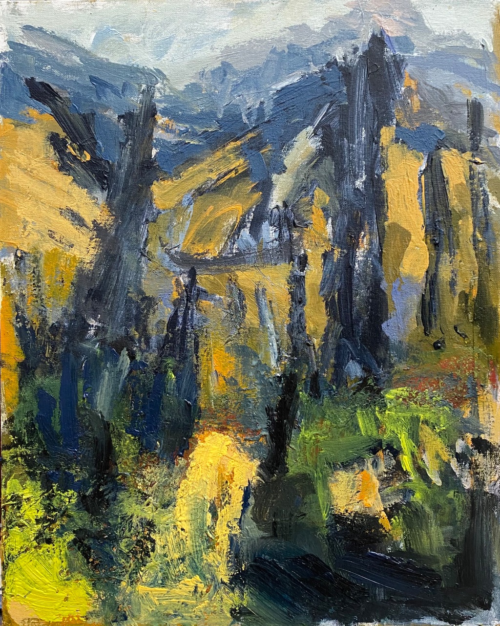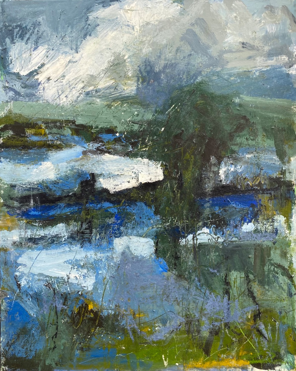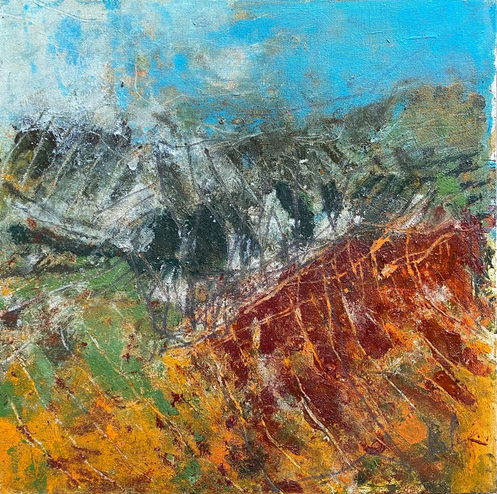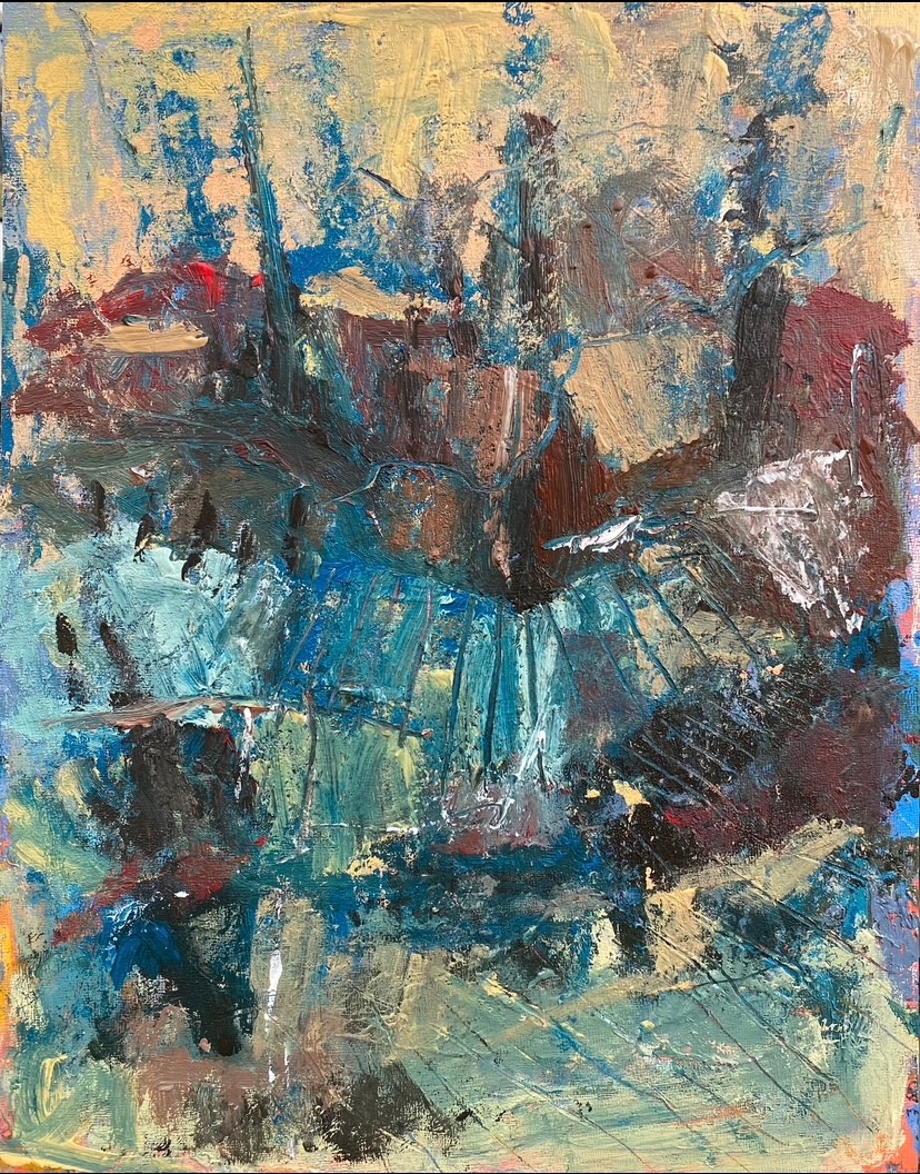 Using mainly acrylics on canvas, and canvas board, my process is quick and deliberate, in the hope of capturing a sense of energy and movement.