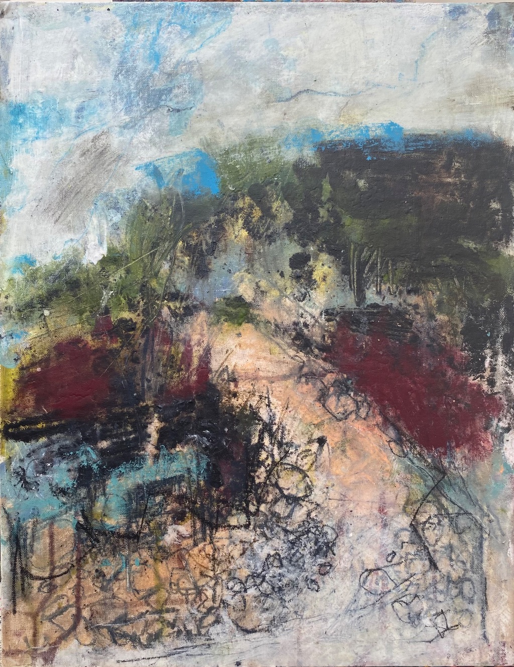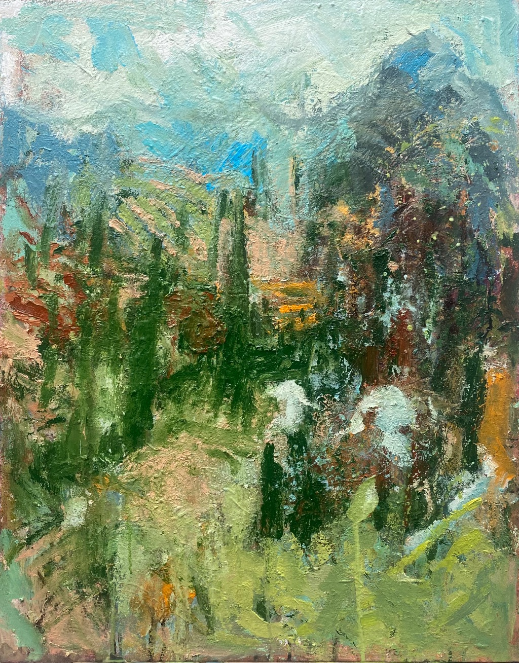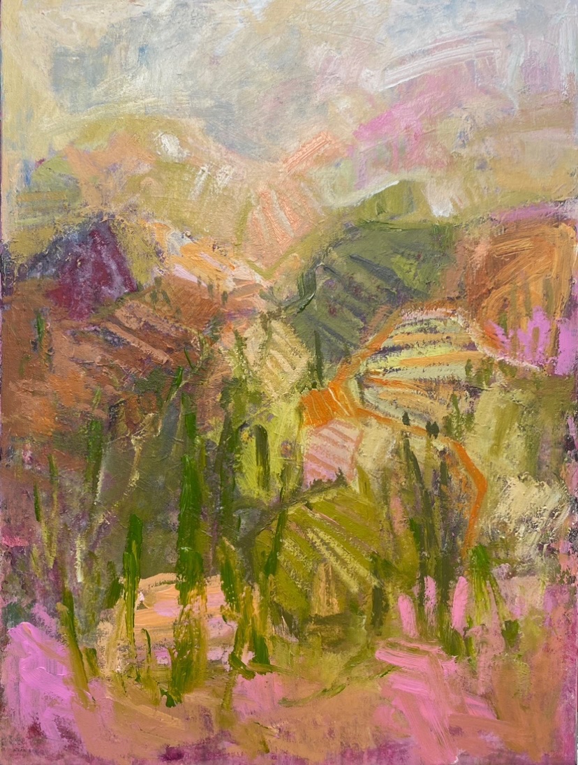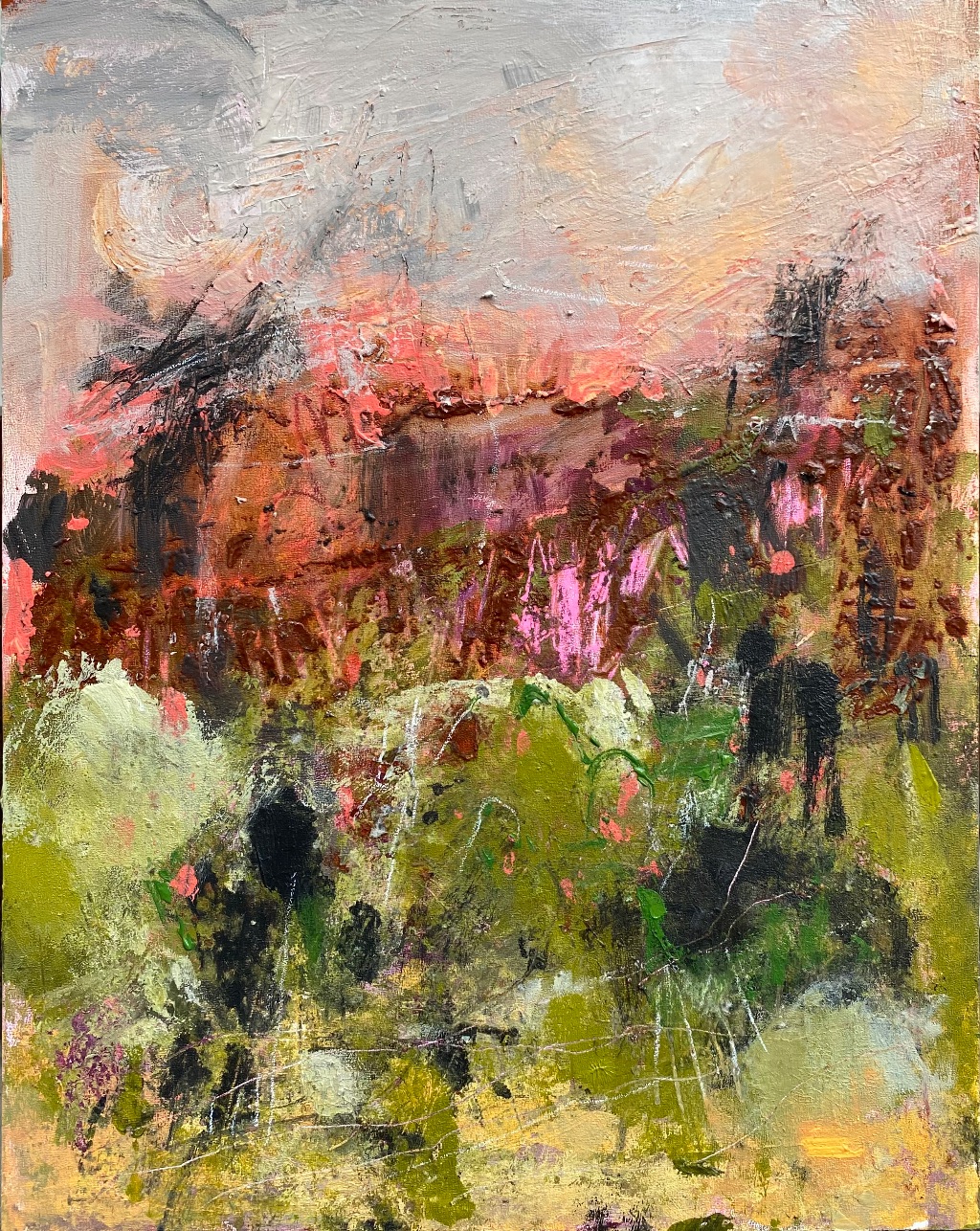 Using mainly acrylics on canvas, and canvas board, my process is quick and deliberate, in the hope of capturing a sense of energy and movement.