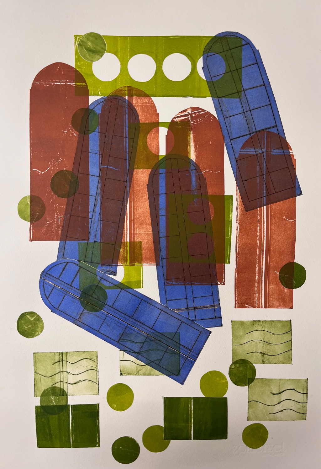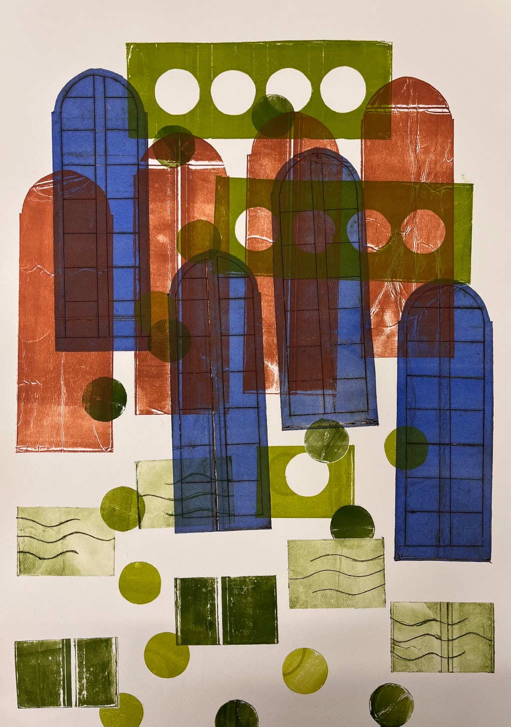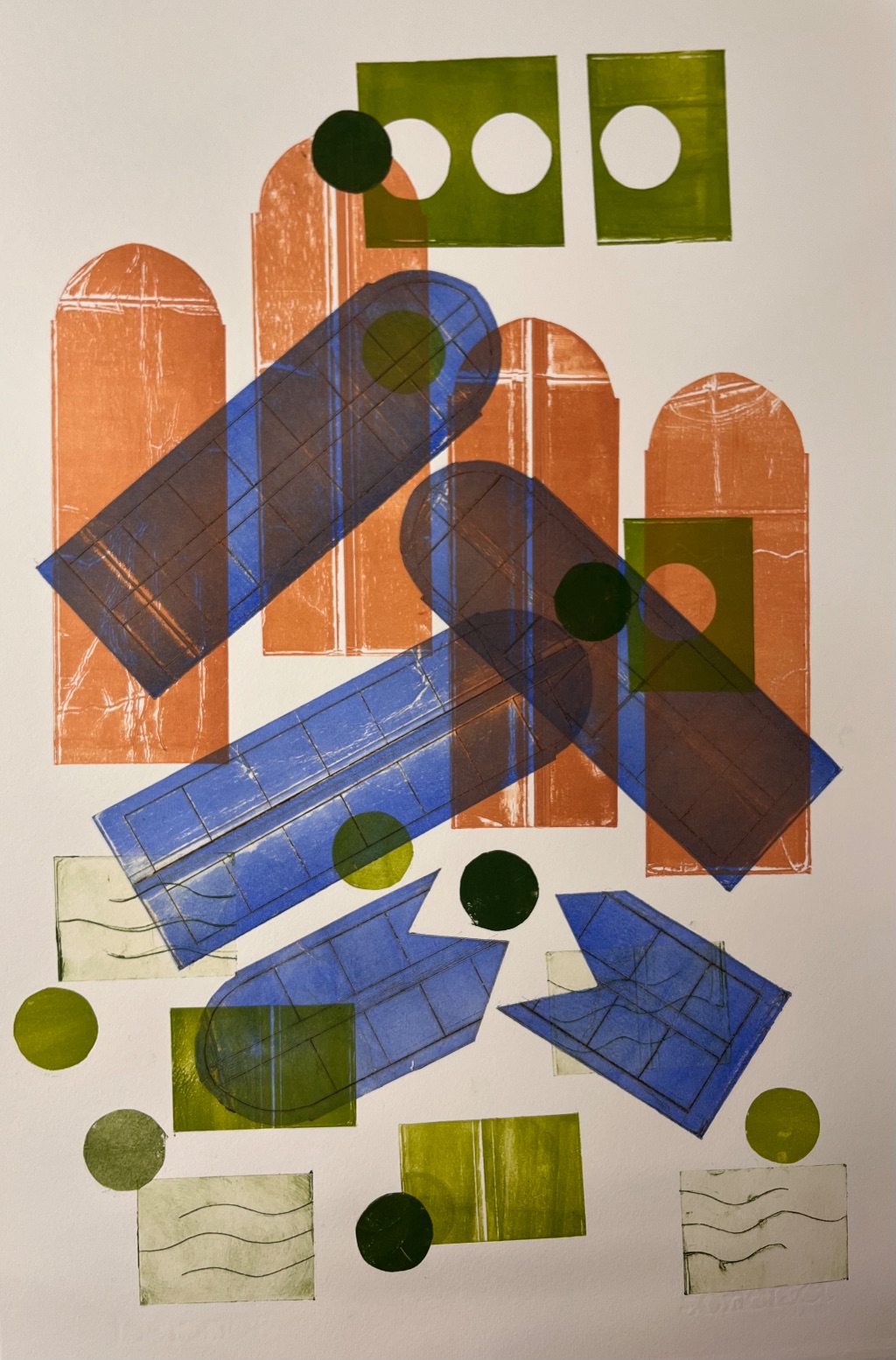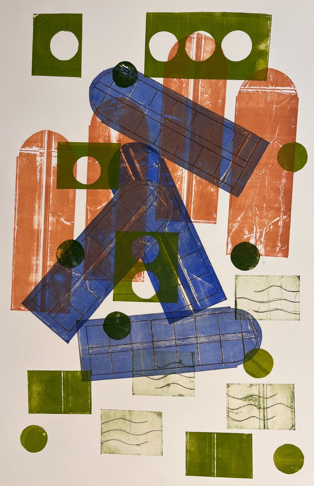 Lucy takes inspiration from the layering of colour, playing with scale, reflection, nature and the urban environment. She then translates this exploring the printmaking techniques of etching, screenprinting, photopolymer intaglio and cyanotype.